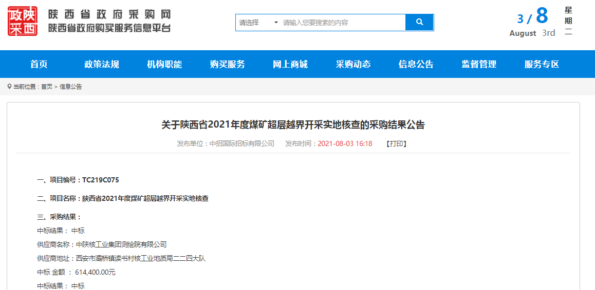 • 2024-05-30喜訊!公司成功中標 “陜西省2024年度煤礦超層越界開采實地核查采購項目”合同包2
